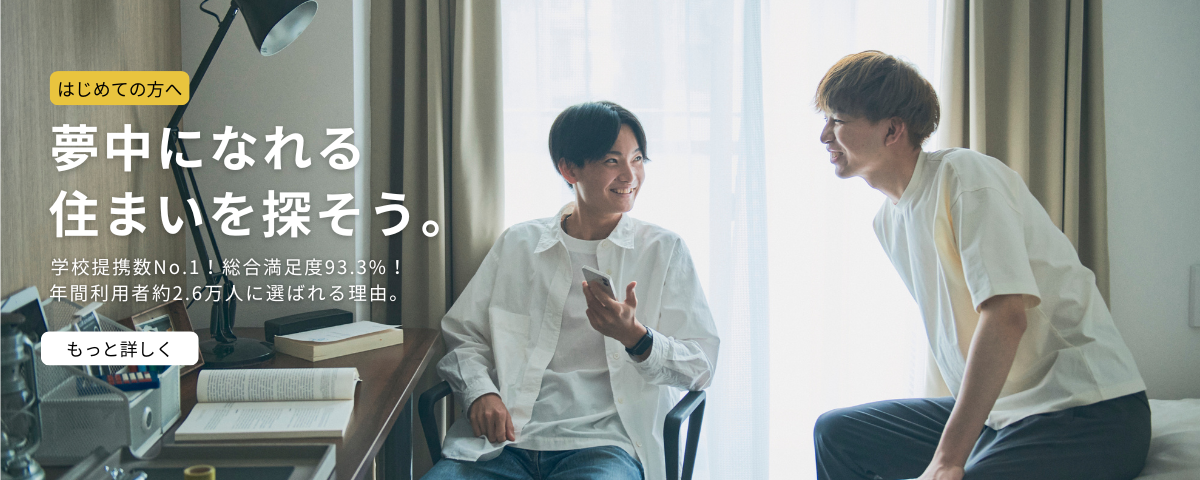 予定進学先が決まりましたら、合格前からでも無料で事前エントリーできます。4月入居の場合でも、進学先が決まり次第随時申込を受け付けます。お気軽にお問合せください。