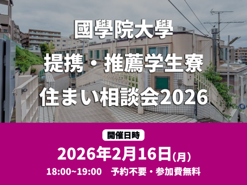 【2/16オンライン開催】「國學院大學提携・推薦学生寮 住まい相談会2026」受験生・保護者向け/予...