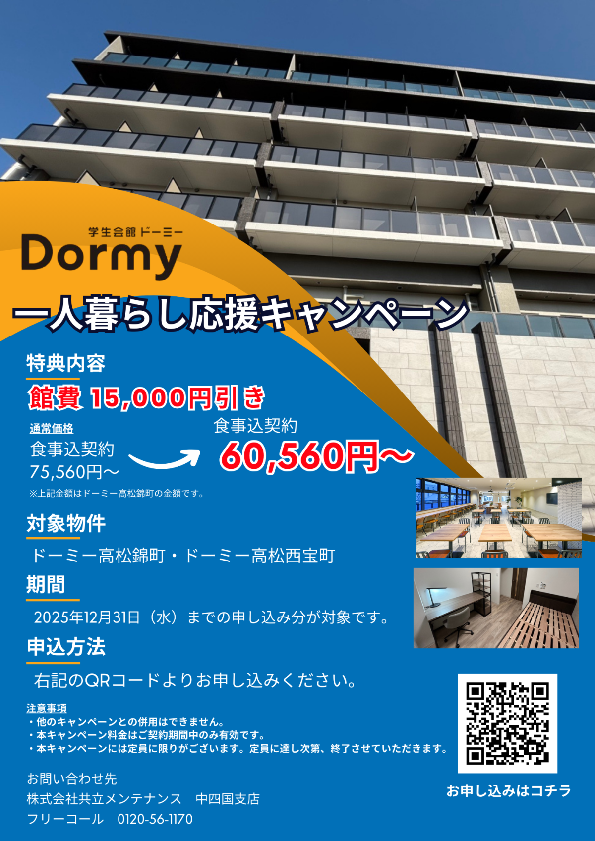 【高松エリアキャンペーン】12/31までのお申込で全居室の館費15,000円OFF!