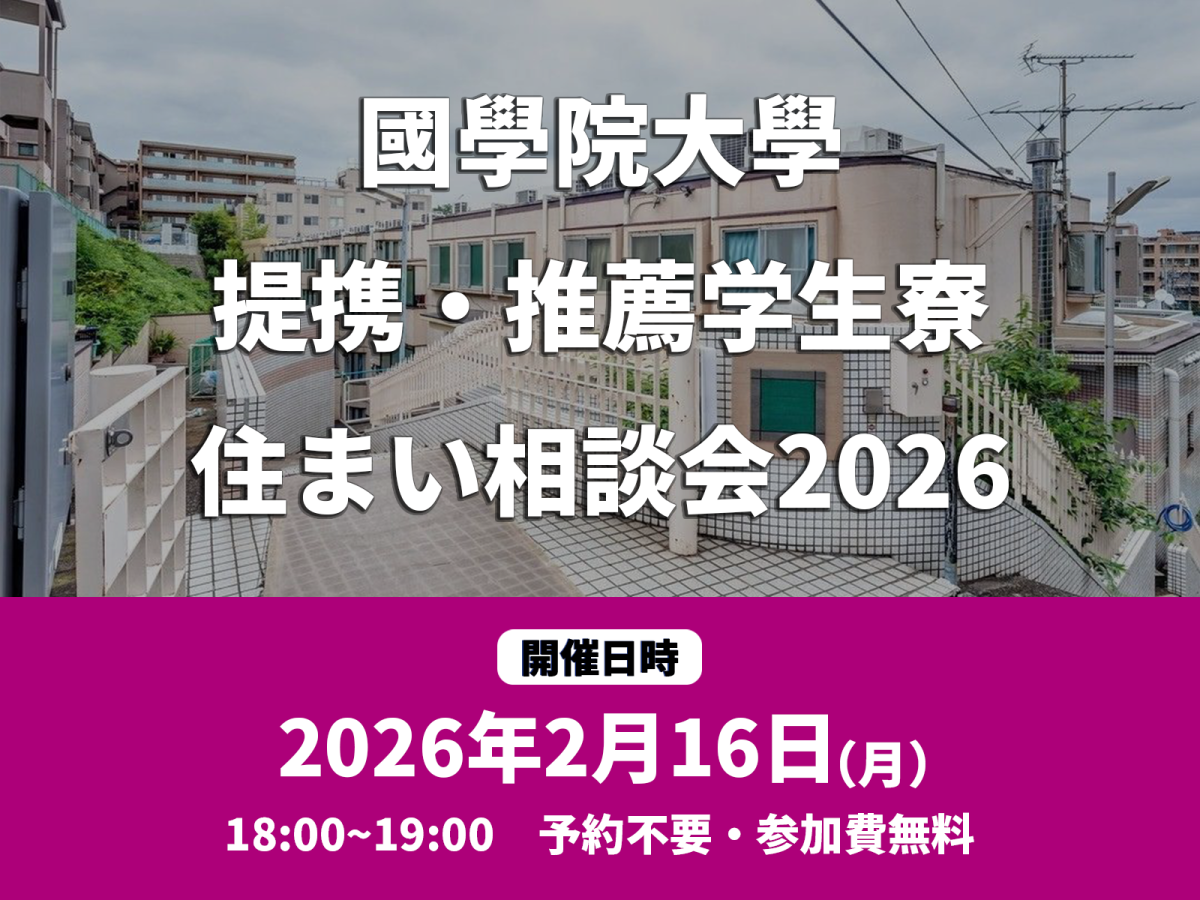 2026年2月16日(月)に、「國學院大學提携・推薦学生寮住まい相談会2026」を開催いたします。