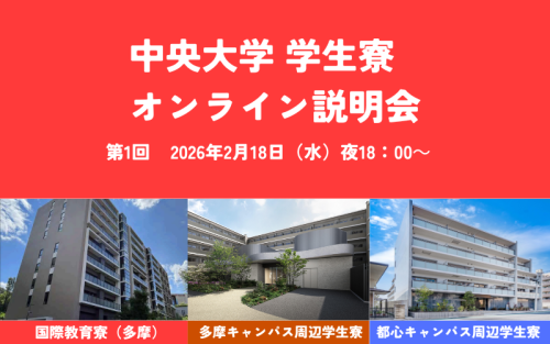 【2/18 18時オンライン開催】中央大学×共立メンテナンス「中央大学の寮・住まいオンライン説明会」...