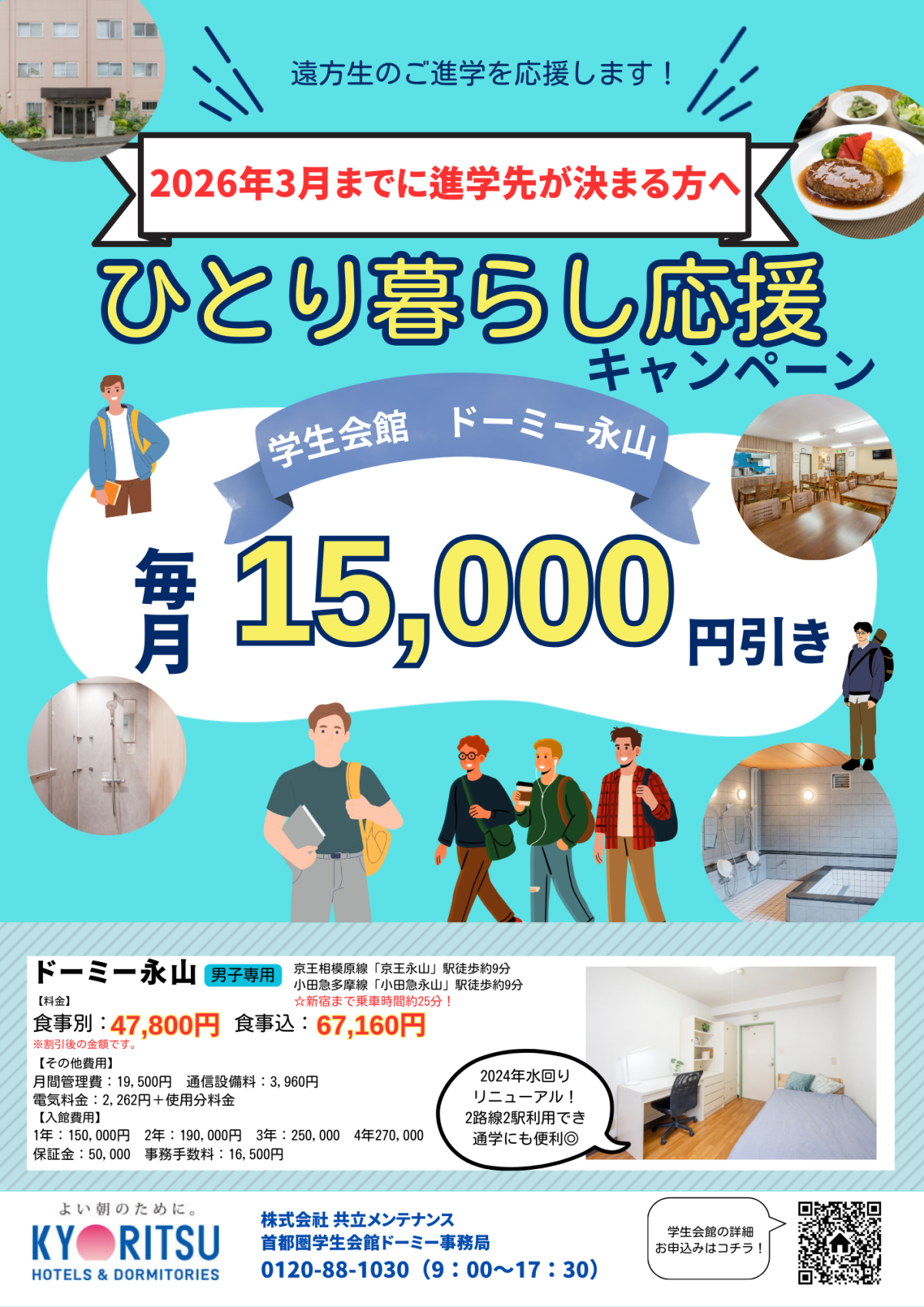 【月額1万5千円引き】学生応援キャンペーン入居募集中!