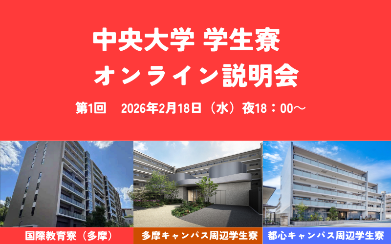 【2/18 18時オンライン開催】中央大学×共立メンテナンス「中央大学の寮・住まいオンライン説明会」~IRC(国際教育寮)から提携寮まで。進学後の生活をイメージしよう~