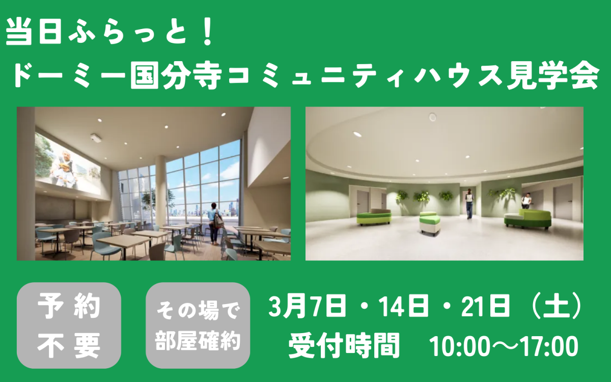 2026年3月7日・14日・21日(土)に、「ドーミー国分寺コミュニティハウス見学会」を開催いたします。当日は寮長寮母がご案内します。