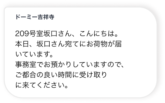 Domicoの主な機能は、食事の予約とメッセージ機能です。入居者様はアプリから食事を予約でき、献立写真やカロリー、栄養価を確認できます。また、寮長寮母さんとメッセージのやりとりができます。荷物の到着通知が手元に届いたり、イベントなどの情報も受け取ることができます。また、外泊やゲストの宿泊などの申請手続きも行えます。