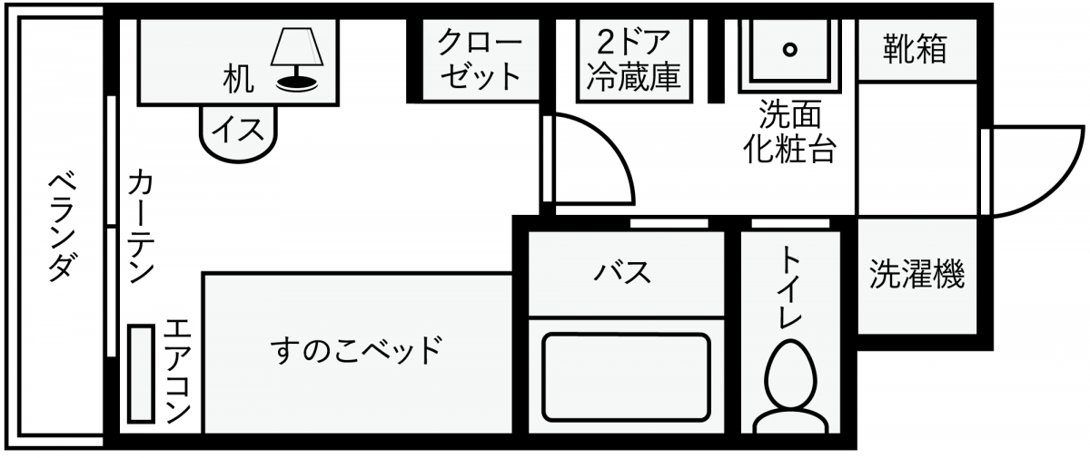 | 居室 | 個室(約16.0㎡)/バストイレ別/家具家電付 |