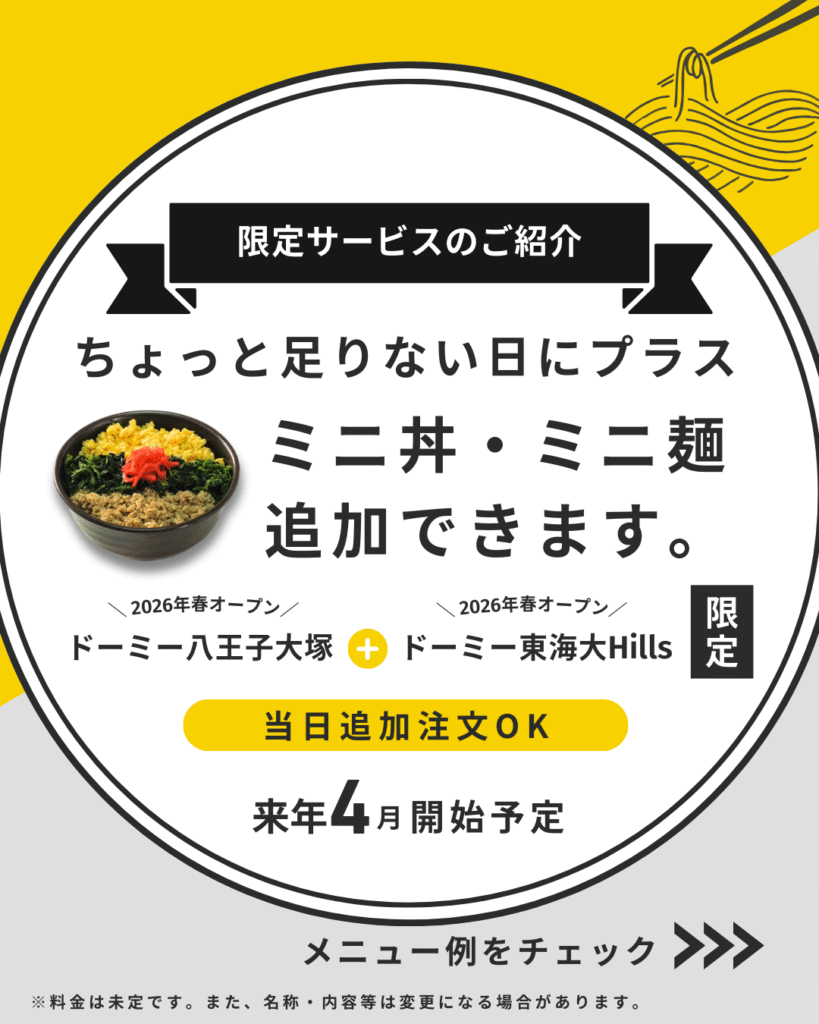 【ドーミー八王子大塚限定】夕食にプラス!「ミニ丼・ミニ麺」サービス