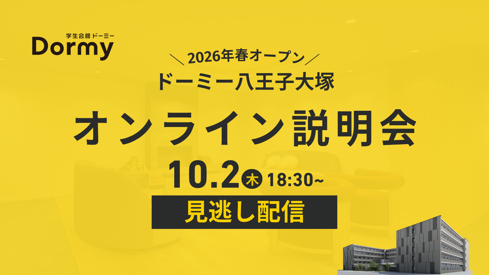 【アーカイブ配信スタート】ドーミー八王子大塚オンライン説明会(10/2)をご視聴いただけます!