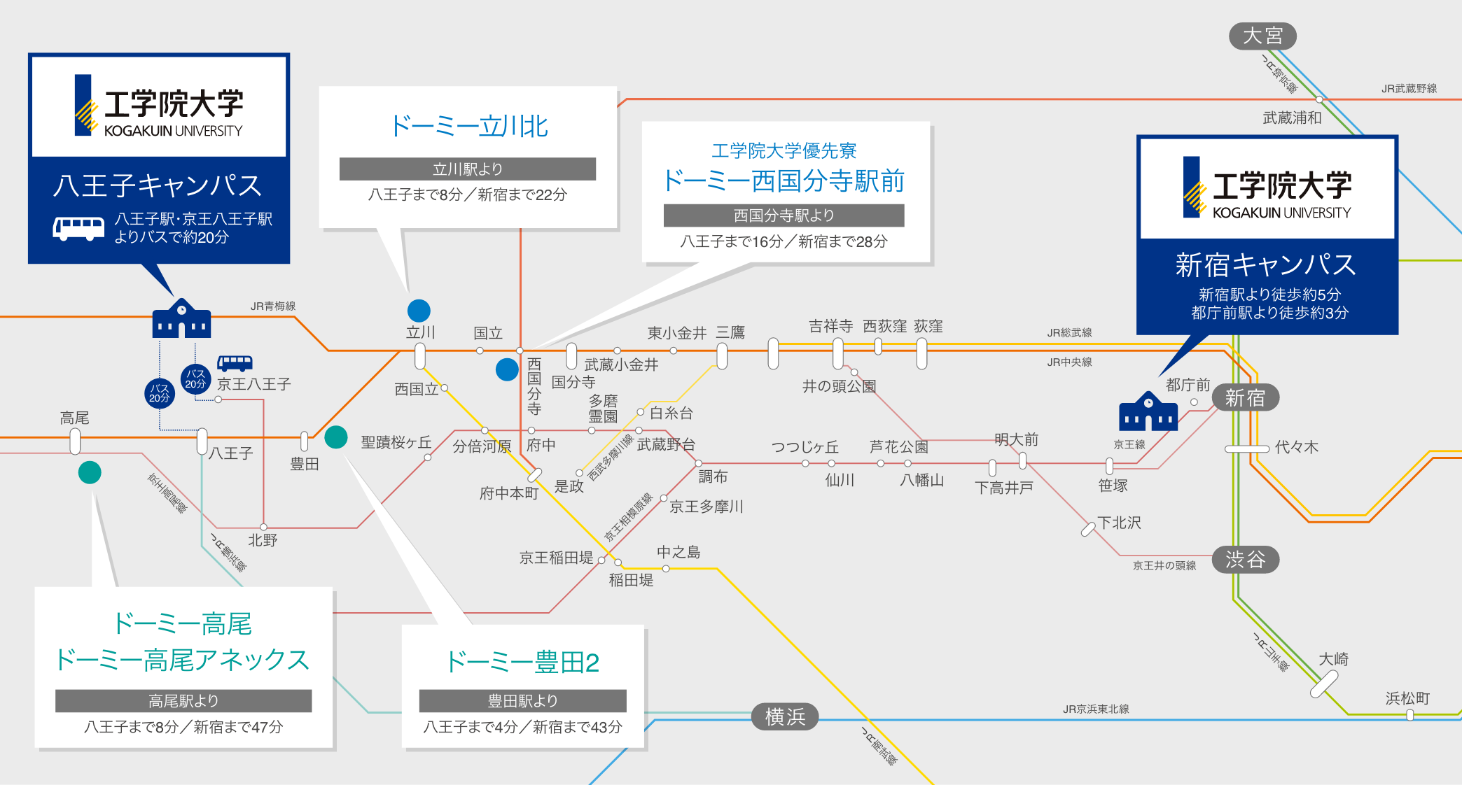八王子キャンパス、新宿キャンパスどちらへも通学が可能なので住み替えが不要です。