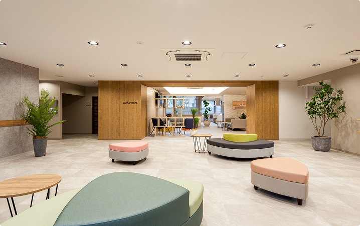 机・ベッド、洗濯機・冷蔵庫といった家具・家電が備え付きなので、引っ越したその日から生活を始められます。朝晩には旬の食材を使用したできたての食事を提供。スタッフ常駐で安心のサポート体制も整っています。