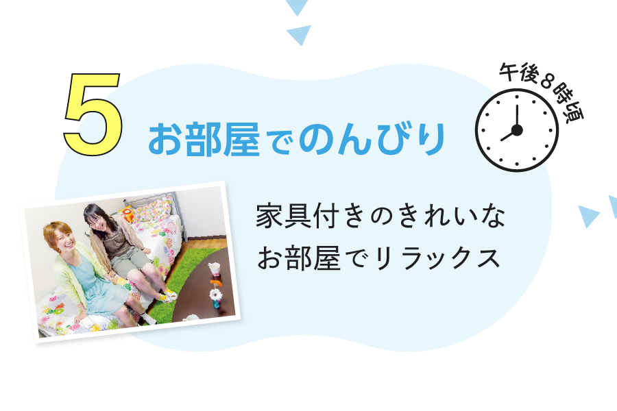 ※夏期お盆期間・年末年始・3月中旬~4月中旬は、体験入寮できませんので、ご注意ください。