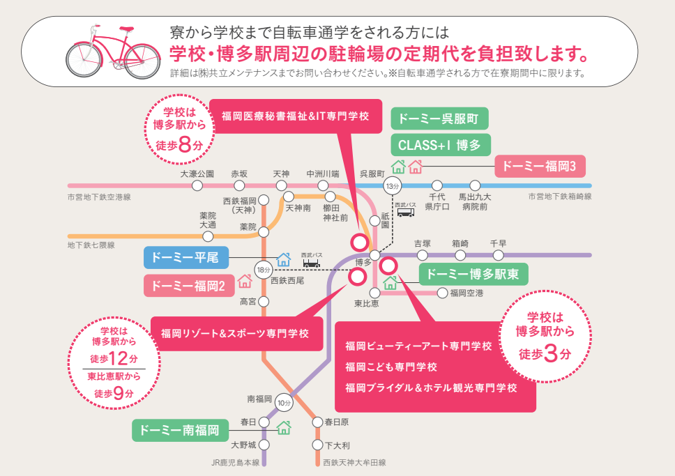 博多ベイエリアのレディースドーミー。どこへ行くにも便利な場所にあります。