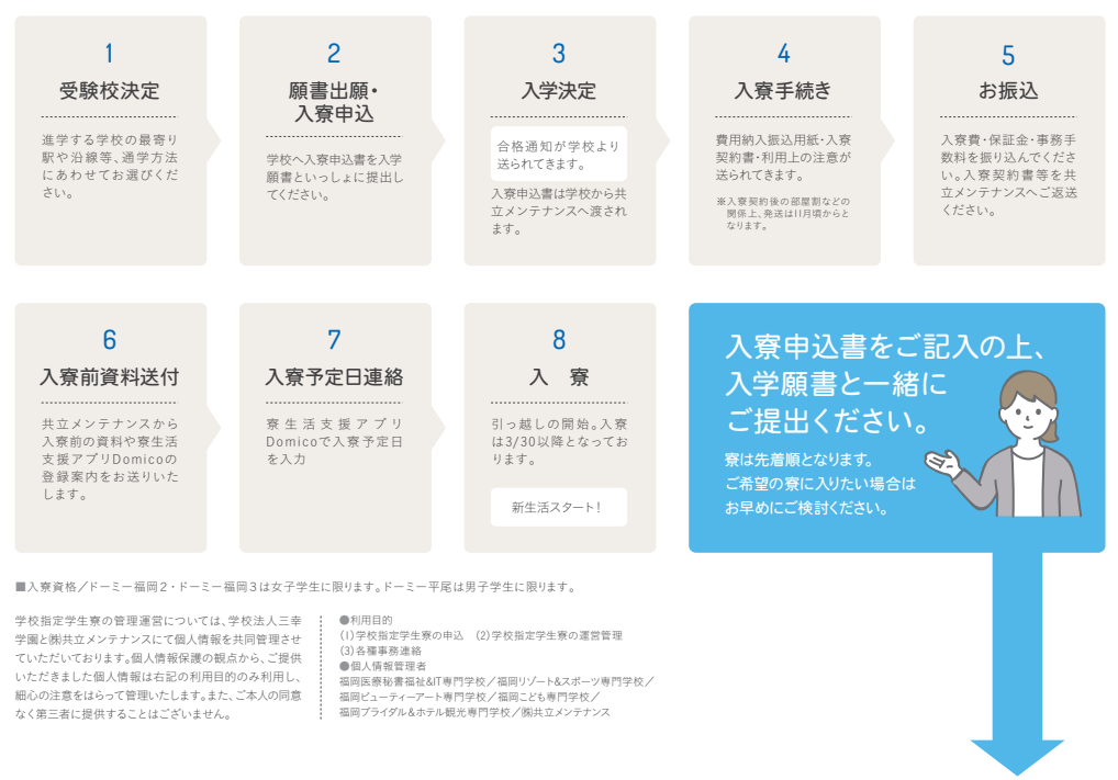 ■入寮資格/ドーミー福岡2・ドーミー福岡3は女子学生に限ります。ドーミー平尾は男子学生に限ります。