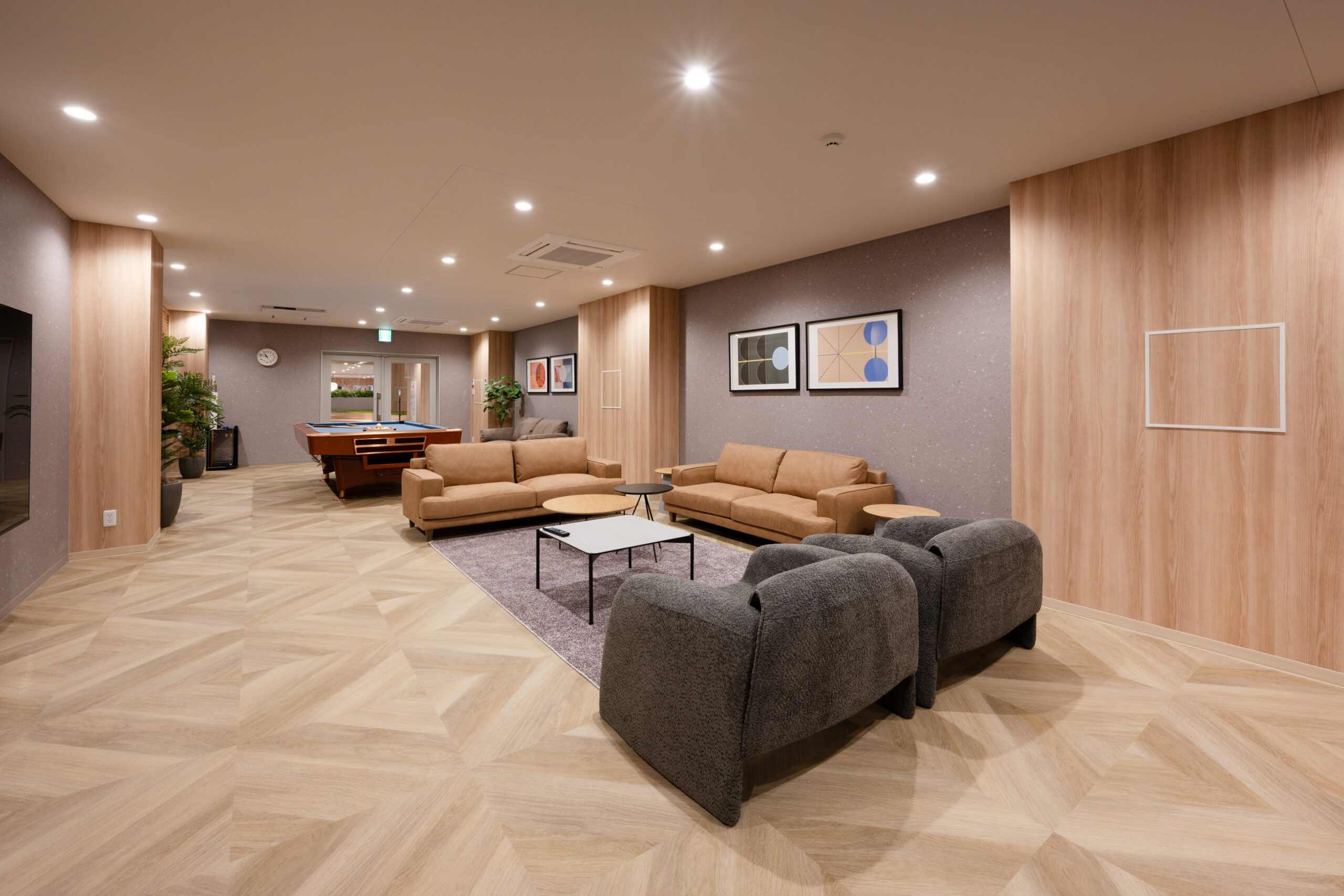 和モダンの落ち着いたデザインで迎える、ホテルのような寮の顔