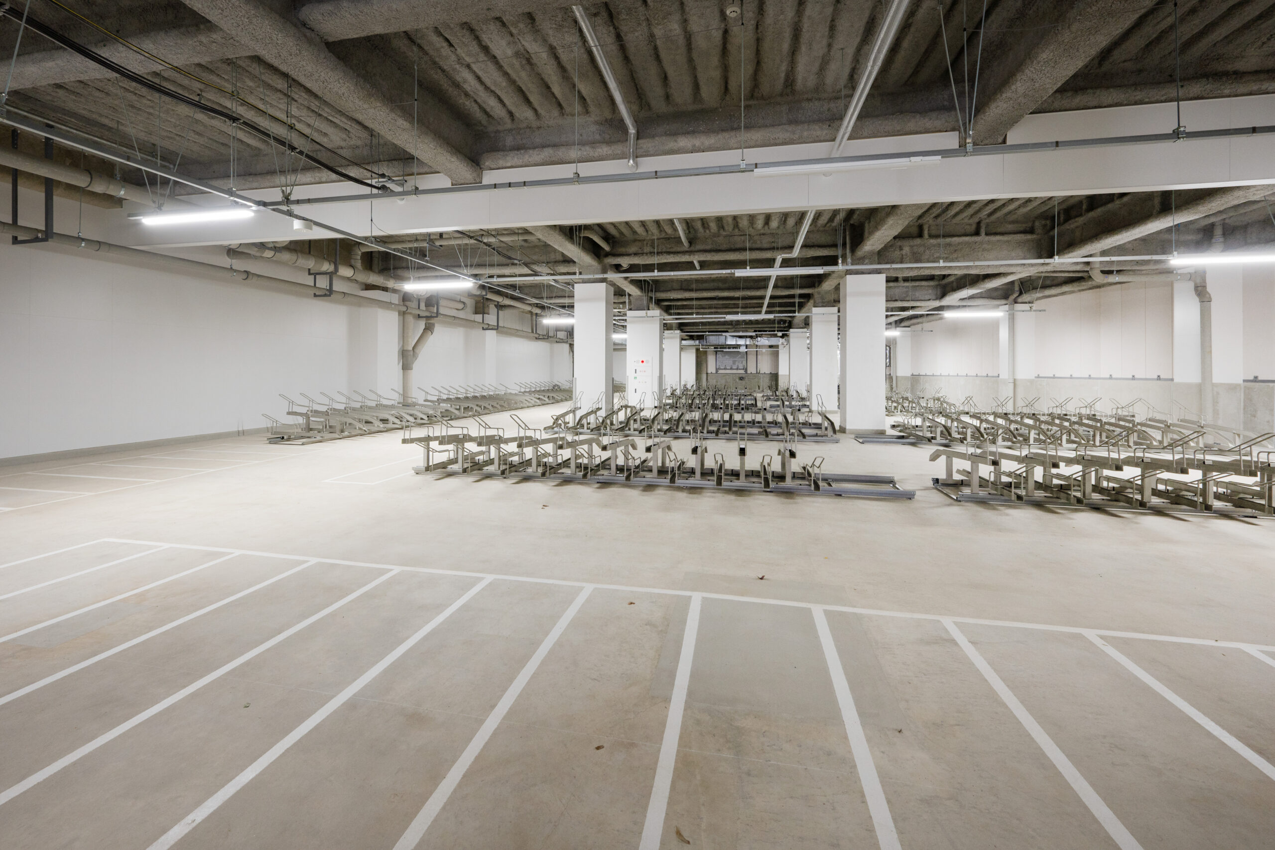 493名全員が停められるスペースをレールタイプと白線タイプでご用意。