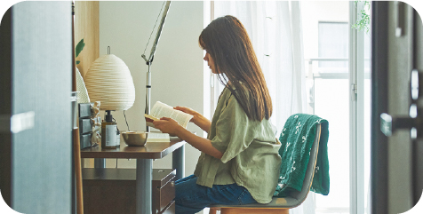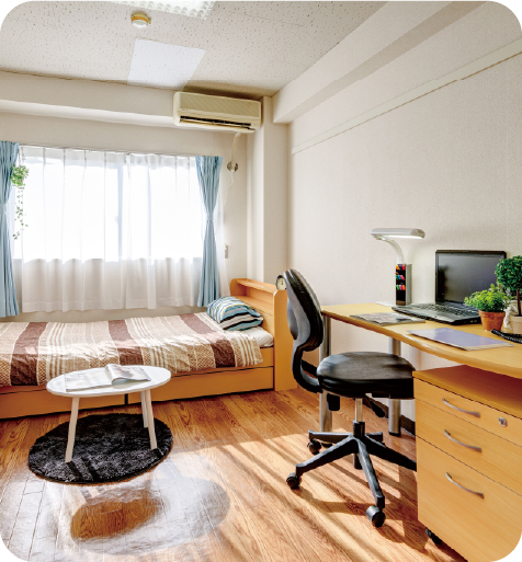 ドーミーの居室は完全個室でプライバシーが守られます。はじめてから生活に必要な家具が付いているので、引っ越ってきた日からすぐに生活がスタートできます。