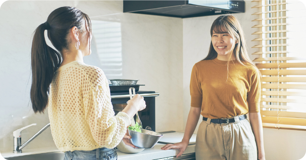 不規則な食事、栄養の偏りは、毎日の生活に様々な影響を及ぼします。学生寮では寮母さんが心を込めてお食事をご用意し、皆さんの健康をしっかりサポートします。