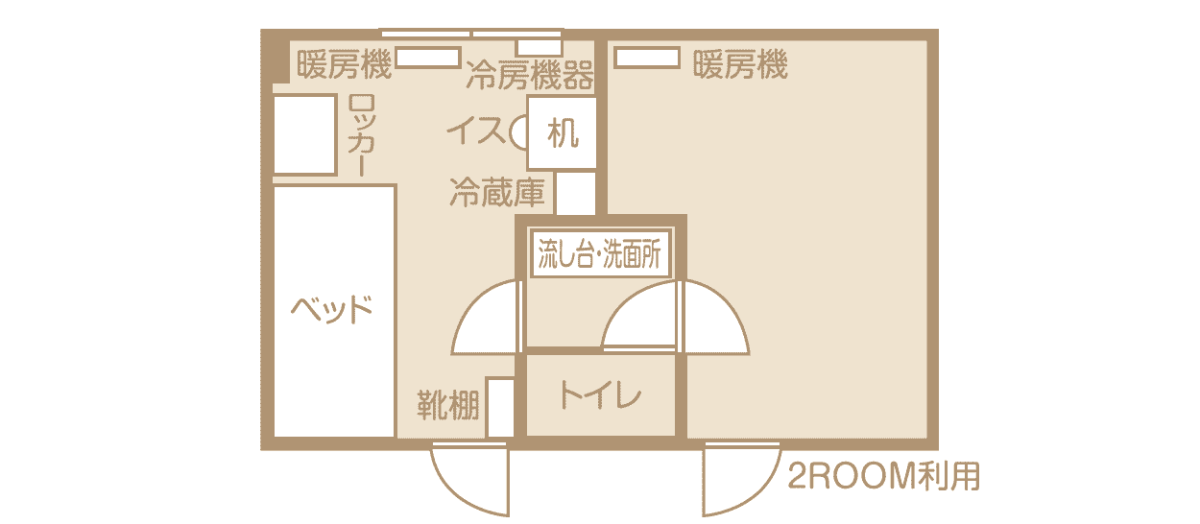 個室①/共用部に近接した居室 | 個室②/①③以外の居室 | 個室③/上階角の居室 | |