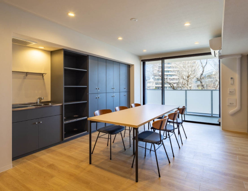 ユニットからアクセスしやすい場所にある1階の「共有キッチン」。2・3階の「マルチユースラウンジ」にもキッチンを併設。