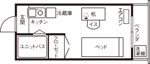 バス・トイレ・キッチンの水回り付きのお部屋です。