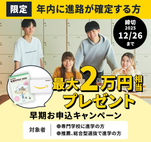 4月入居の場合、前年の10月からお申込受付を開始しています。お部屋を確保しても館費発生は4月分からとなるため、無駄な費用はかかりません。受付は先着順のため、お早めのお申し込みをおすすめしています。